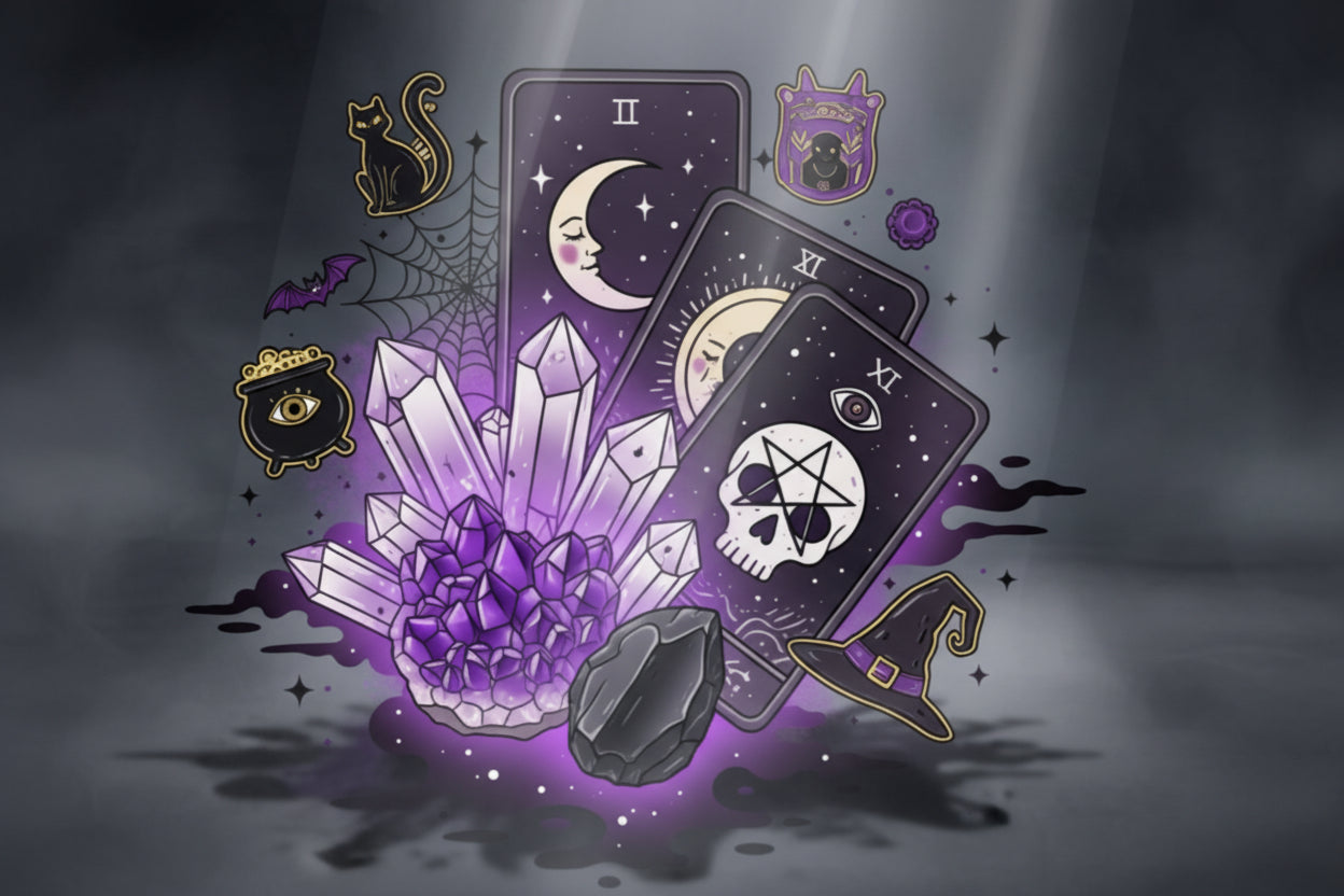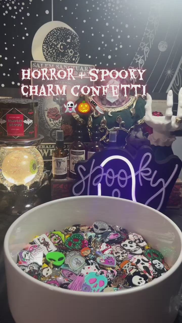 Discover witchy and horror themed enamel pins, jewelry charms, shoe charms, crystals, tarot, and many more spooky things 👻💀🪄
